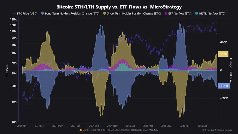 根据链上数据,近期比特币价格持续走低,使短期持有者遭遇显著未实现亏损。