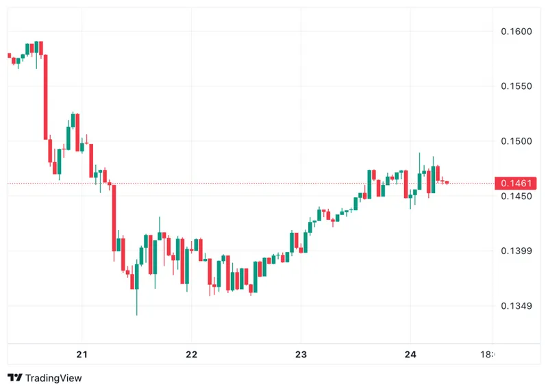 此外,DOGE的ETF消息进一步巩固了其作为“蓝筹”狗狗币的地位,吸引了闲置资金。目前DOGE的交易价格为0.146美元,数据来源于CoinMarketCap。