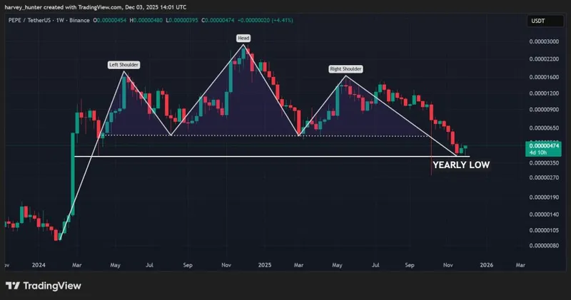 PEPE似乎已经脱离了典型的看跌模式,近期的年度低点为看涨的PEPE价格预测提供了良好的支撑。