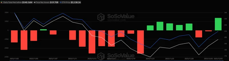 此外,过去7天内,以太坊上涨了5.6%,交易区间为2,736美元至3,222美元。