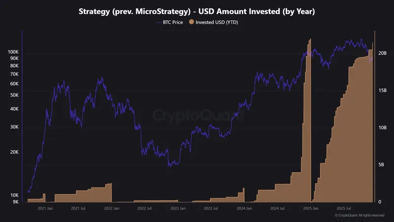 作为最大的比特币持有者,Strategy本周一购入了价值9.62亿美元的比特币,这是自7月以来最大的一次购买。根据CryptoQuant的数据,该公司目前距离2024年获得的219.7亿美元比特币仅差5亿美元。