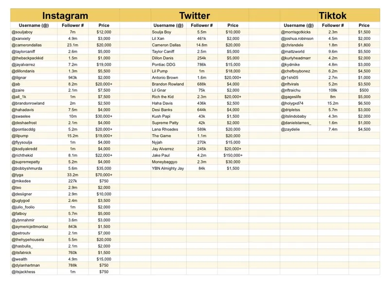 他估计,Soulja Boy在2021年牛市中从推广活动中赚取了73万美元。根据泄露的价格单,该说唱歌手在Instagram上收费1.2万美元,在X平台上收费1万美元进行推广。