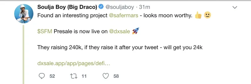 2022年2月,Soulja Boy与其他几位名人因涉嫌参与与SafeMoon代币相关的拉高出货计划,被列入集体诉讼。
