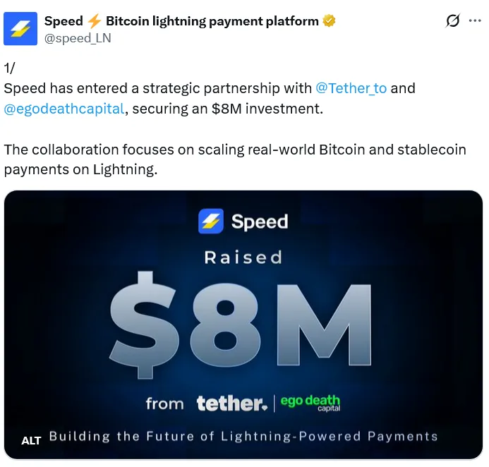 Speed利用比特币闪电网络促进USDT转账,已从Tether和Ego Death Capital获得800万美元融资。