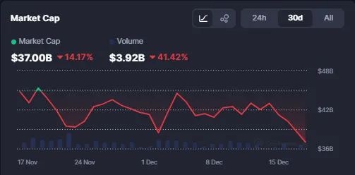 然而,随之而来的反转同样迅速。到2025年底,该领域的总价值已降至420亿美元以下,日交易量减少,个别代币也失去了大部分之前的涨幅。
