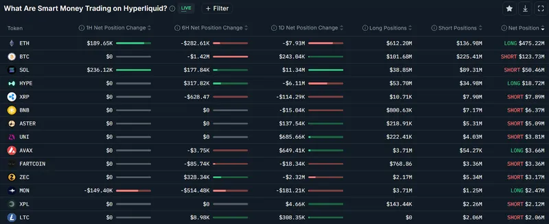 Nansen数据显示,尽管"聪明资金"交易者对比特币持有1.23亿美元的净空头头寸,但这一群体同时押注以太币(ETH)价格上涨,累计净多头头寸达4.75亿美元。