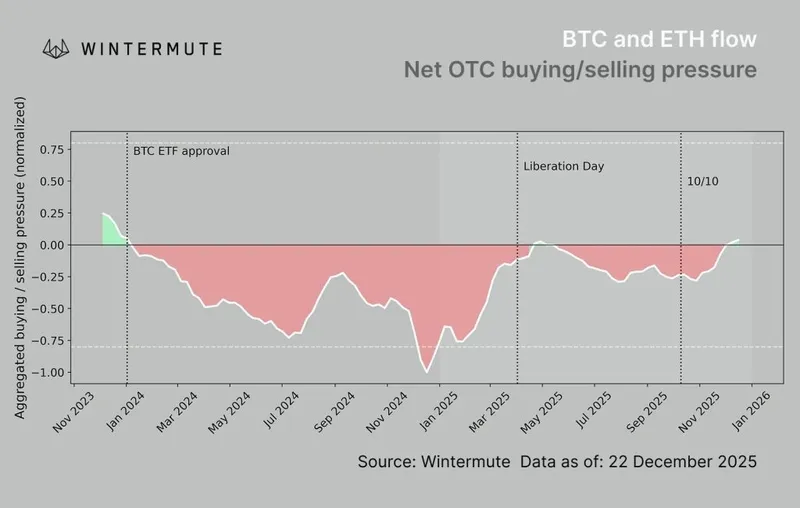 Wintermute的内部流动数据表明,主要资产的购买压力有所回升,自夏季以来,机构流入提供了持续支持。