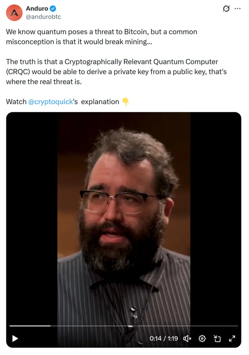 Coin Bureau的联合创始人和加密分析师Nic Puckrin则直言:“所谓‘量子威胁比特币’的说法,90%是营销,10%是潜在威胁我们几乎可以肯定,距离真正能够破解现有密码系统的计算机至少还有十年。”