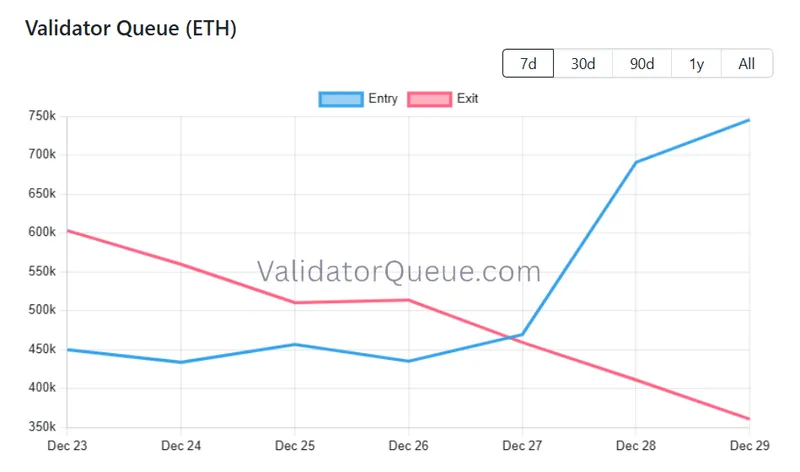 Abdul在12月24日早些时候的X帖文中提到,退出队列是预测通过解除质押进入市场的供应流向的重要指标,自七月以来一直处于抛压状态。