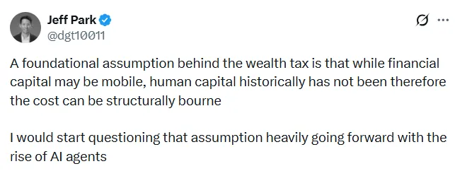 Carter表示:“我总体上很喜欢Ro,也和他的部分团队有过很好的互动,但我想知道他们是否分析过资本流动性对财富税的反应。”