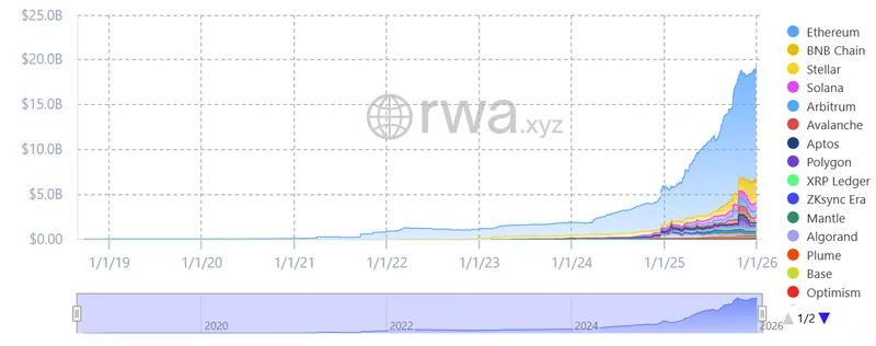 以太坊仍然是RWA代币化的主导网络,占据链上RWA市值的最大份额。