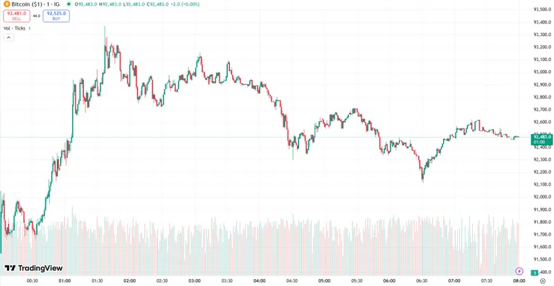 截至周一早晨,比特币价格为92,483美元。在过去24小时内,该币种大部分时间维持在91,000美元水平,随后从91,138美元跃升至93,169美元的日内高点。