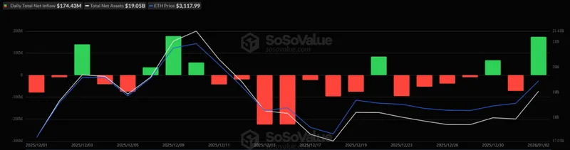此外,美国以太坊ETF也在1月2日录得正流入,金额为1.74亿美元,总净流入约为125亿美元。