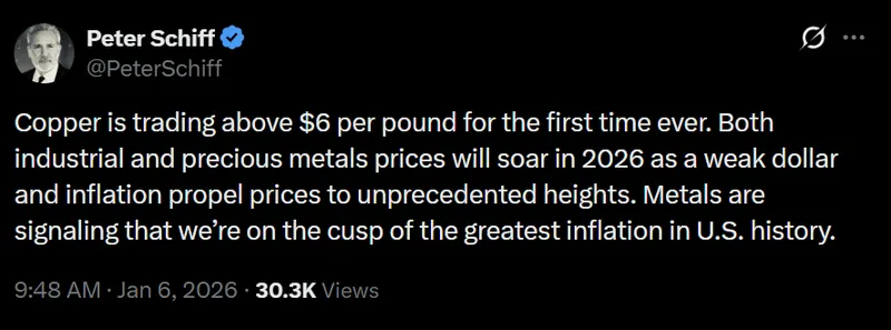 经济学家Peter Schiff指出,这一价格飙升是投资者为他所称的"美国历史上最严重的通货膨胀"做准备的信号,尽管消费者价格指数的最新数据显示通胀趋势有所缓和。