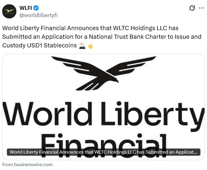 World Liberty Financial最近向美国货币监理署(OCC)提交了全国信托银行执照的申请,以加速其稳定币USD1的机构采用。