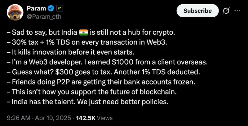 印度税务监管机构称加密货币是逃税工具