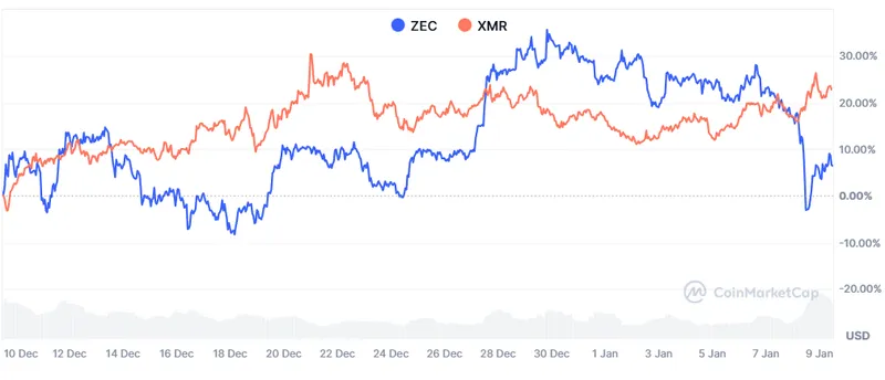根据CoinMarketCap的数据显示,隐私币Zcash的竞争对手门罗币(XMR)周四超过了ZEC的市值,重新获得领先隐私保护加密货币的地位。
