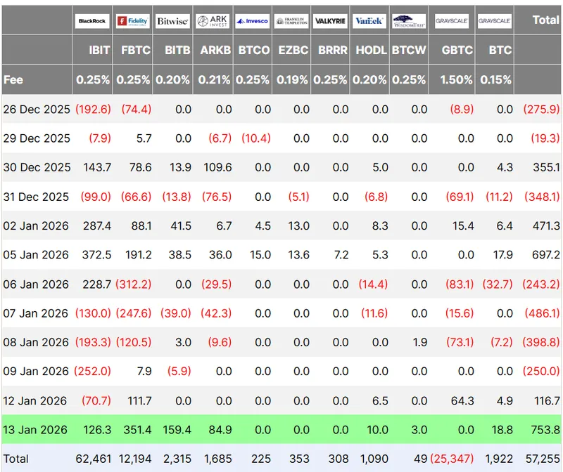 根据Farside Investors的数据,美国上市的现货比特币(BTC)ETF在周二吸引了7.53亿美元的资金流入,这是在经历了四天的资金外流后,连续第二天实现资金流入。