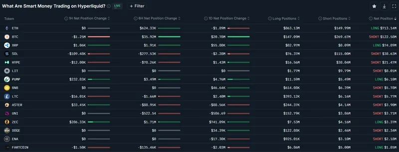 聪明资金交易者在Hyperliquid交易所的永续合约头寸。来源:Nansen