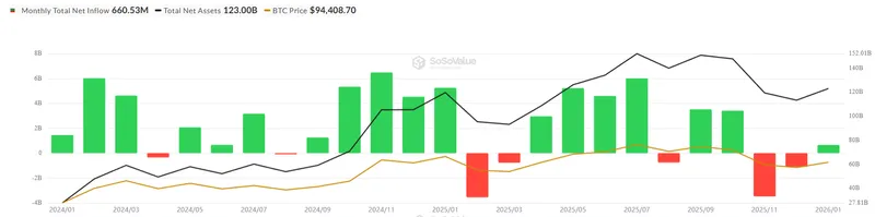 比特币交易所交易基金(ETF)在2026年开局时资金流动波动较大,投资者需求剧烈波动,而传统ETF则以较快的速度吸引资金。