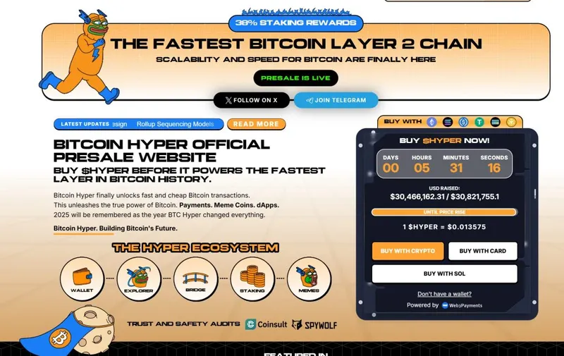 比特币Hyper($HYPER)正在为比特币生态系统带来新阶段。尽管比特币仍是安全性的金标准,但比特币Hyper弥补了其一直缺乏的速度,达到了Solana级别的速度。结果是:快速、低成本的智能合约、去中心化应用程序,甚至是迷因币的创建,所有这些都由比特币保障。
