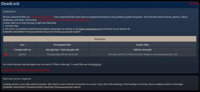 一旦受害者感染该恶意软件并数据被加密,DeadLock便通过勒索信进行威胁,若未满足要求则出售窃取的数据。