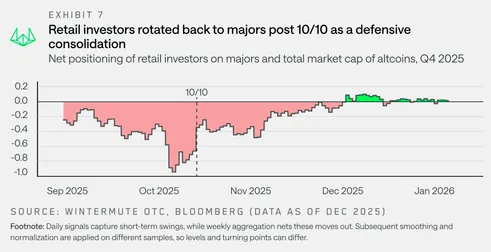 “2025年未能实现预期的反弹,但可能标志着加密货币从投机转向成熟资产类别的开端,”Wintermute的分析总结道。