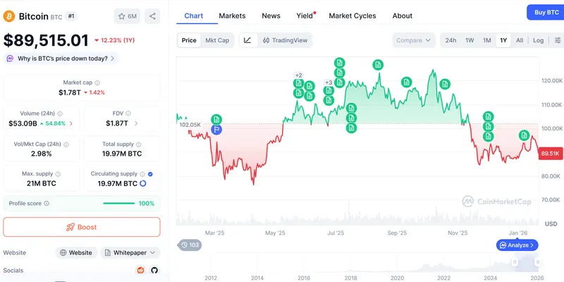 此举正值加密货币市场近期回调之际。Bitcoin自10月高点以来已下跌约30%,目前交易价格接近9万美元。