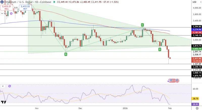 以太坊价格展望:2400美元下行趋势加速