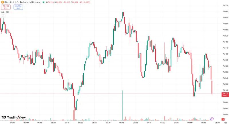 截至周三早晨,比特币交易价格为76,415美元。它以78,902美元的日内高点开始,随后短暂下跌至73,111美元的日内低点,最后回升至当前水平。