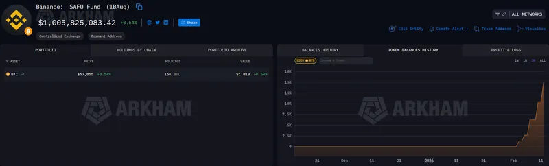 币安在周四的社交媒体上表示,该基金目前持有1.5万枚比特币,总价值超过10亿美元,平均持仓成本为每枚6.7万美元。