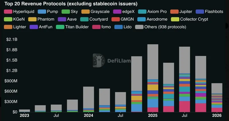 DefiLlama的数据显示,借贷与交易基础设施的融合使得衍生品交易为DeFi带来了超过10亿美元的季度收入。