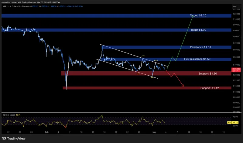 目前,1.30美元是关键支撑,多次测试后,任何水平的重复触及都会削弱其强度。如果XRP突破1.30美元并伴随动能,价格可能会迅速下探至1.12美元,这是下一个重要的需求区。