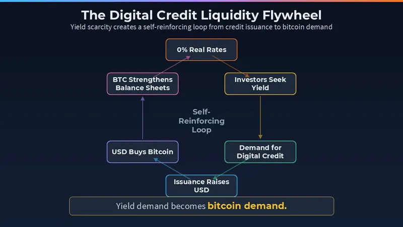 Burnett预计,数字信贷产品将在全球收益需求与比特币增持之间形成“反身循环”,标志着“基于可验证稀缺货币的信贷体系初步形成阶段”。