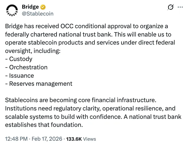 Visa加密业务负责人Cuy Sheffield表示:“我们致力于满足企业的需求,越来越多的业务正向链上迁移。与Bridge的扩展合作为我们将稳定币的速度、透明度和可编程性直接引入结算流程提供了新路径。”