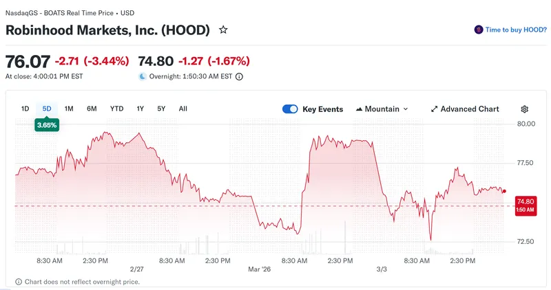 在中美与伊朗之间的冲突不断升级之际,全球市场承压,主要股指普遍下跌。根据Yahoo Finance的数据,Coinbase股价下跌1.55%,而Robinhood则下跌3.44%。