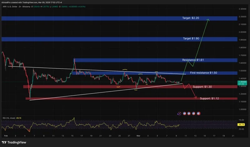 目前,$1.30是关键支撑位。只要该水平保持,XRP可以继续巩固并尝试再次突破。