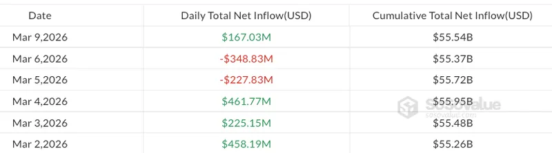 美国比特币ETF在周一实现了1.67亿美元的净流入,而以太坊、瑞波币和索拉纳等山寨币基金在加密货币市场反弹的情况下,连续三天出现资金流出。