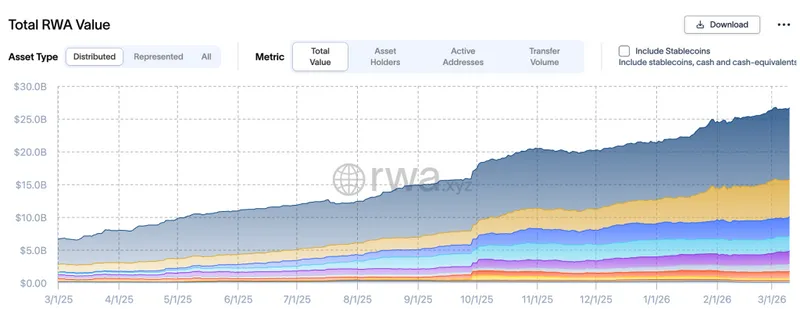 尽管整体加密市场面临波动和恐慌情绪,现实资产的代币化却悄然增长。