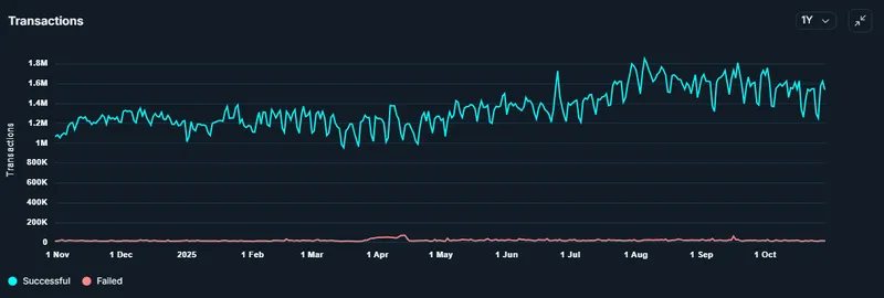 周二,以太坊的日交易量达到了160万笔,创下近一个月的新高。这一水平上一次出现在10月初,即创纪录的190亿美元爆仓事件发生之前。