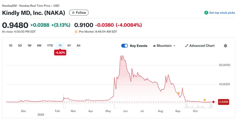 目前,该公司股票在纳斯达克以NAKA代码交易,与其所持有的比特币资产相比,仍处于严重折价状态。据“Yahoo! Finance”数据显示,目前价格约为$0.9480,远低于5月高点$25。