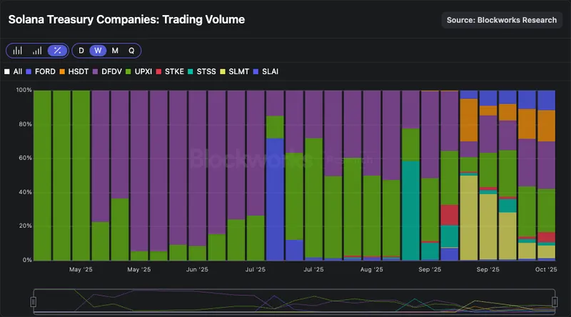 ETH 领域 BMNR 已成为明显领头羊,而 SOL 领域的主导公司仍在竞争。预计未来一个月,交易量将进一步集中于头部企业。