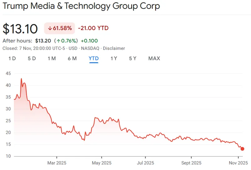 该公司与特朗普相关,运营Truth Social社交媒体平台,周五公布的财报显示,其第三季度净亏损较去年同期的1930万美元有所扩大。