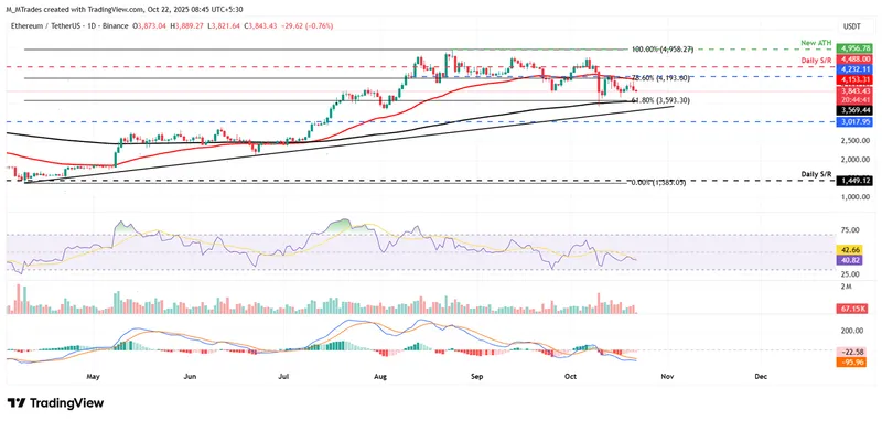 以太坊价格在突破4,232美元日阻力位后,上周回调超过4%。本周截至周二,ETH继续下跌3%,截至周三,交易价约为3,847美元。