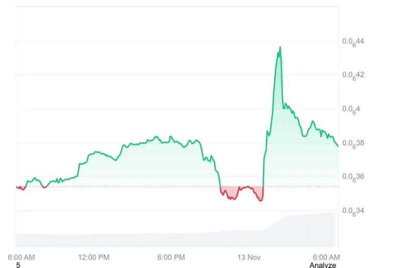 这枚市值约为1.7亿美元的第339名加密货币,在过去24小时内价格上涨了8.44%。