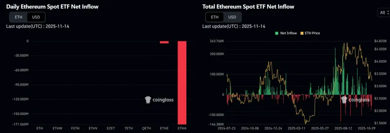 ETF活动也有所降温。最近的Coinglass数据显示,专注于ETH的基金在本季度记录了最大单日资金流出之一,进一步巩固了机构的防守态势。综合链上数据和流动性数据,显示大型玩家正在重新布局,而非恐慌性抛售,但也没有积极增持。