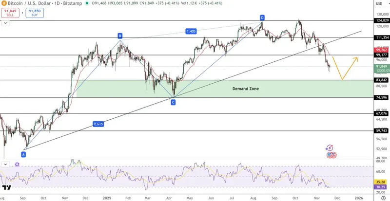 — Cameron Winklevoss (@cameron) 2025年11月18日比特币(BTC/USD)市场设置与关键水平