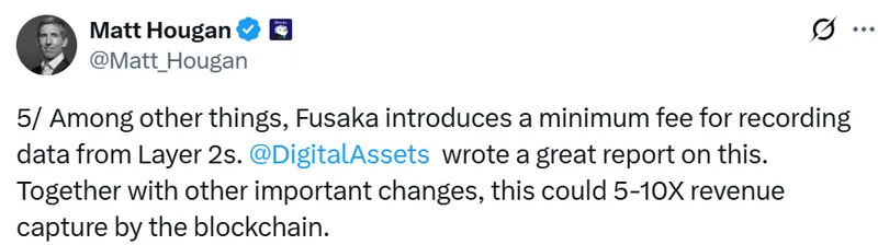 Hougan还提到,以太坊的Fusako升级可能会成为“显著提升代币价值捕获”的催化剂。