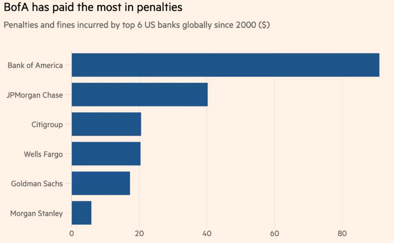 传统金融机构长期以来批评加密公司助长非法金融活动。然而,根据Better Markets和《金融时报》的数据,美国银行在过去20年中因合规失败支付了超过2000亿美元的罚款。