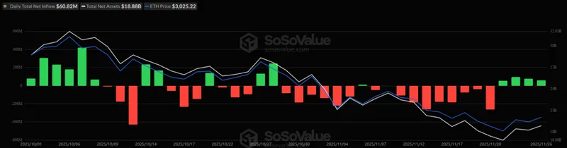 以太坊当前价格为3,027美元。该币从日内低点2,892美元反弹至3,041美元,随后达到3,066美元的日内高点。